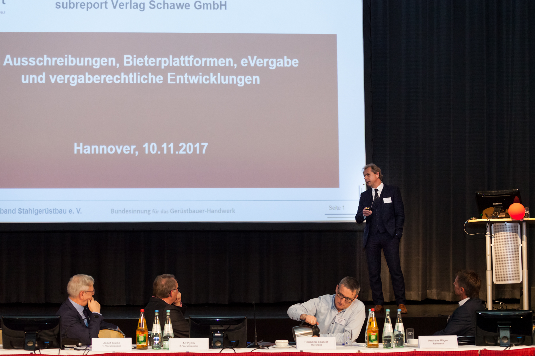 In zahlreichen Vorträgen informierten Experten und Praktiker, wie sich das Gerüstbauer-Handwerk für das Zeitalter der Digitalisierung wappnen kann und stellten Lösungen vor – etwa zur Planung, Datenverwaltung, dem Einsatz von GPS und zur elektronischen Angebotsabgabe. Zu ihnen gehörte auch subreport-Vertriebsmanager Stefan Ehl, der den digitalen Prozess rund um Ausschreibungen und Auftragsvergabe vorstellte und die Fragen der Teilnehmer zu diesem Themengebiet beantwortete.