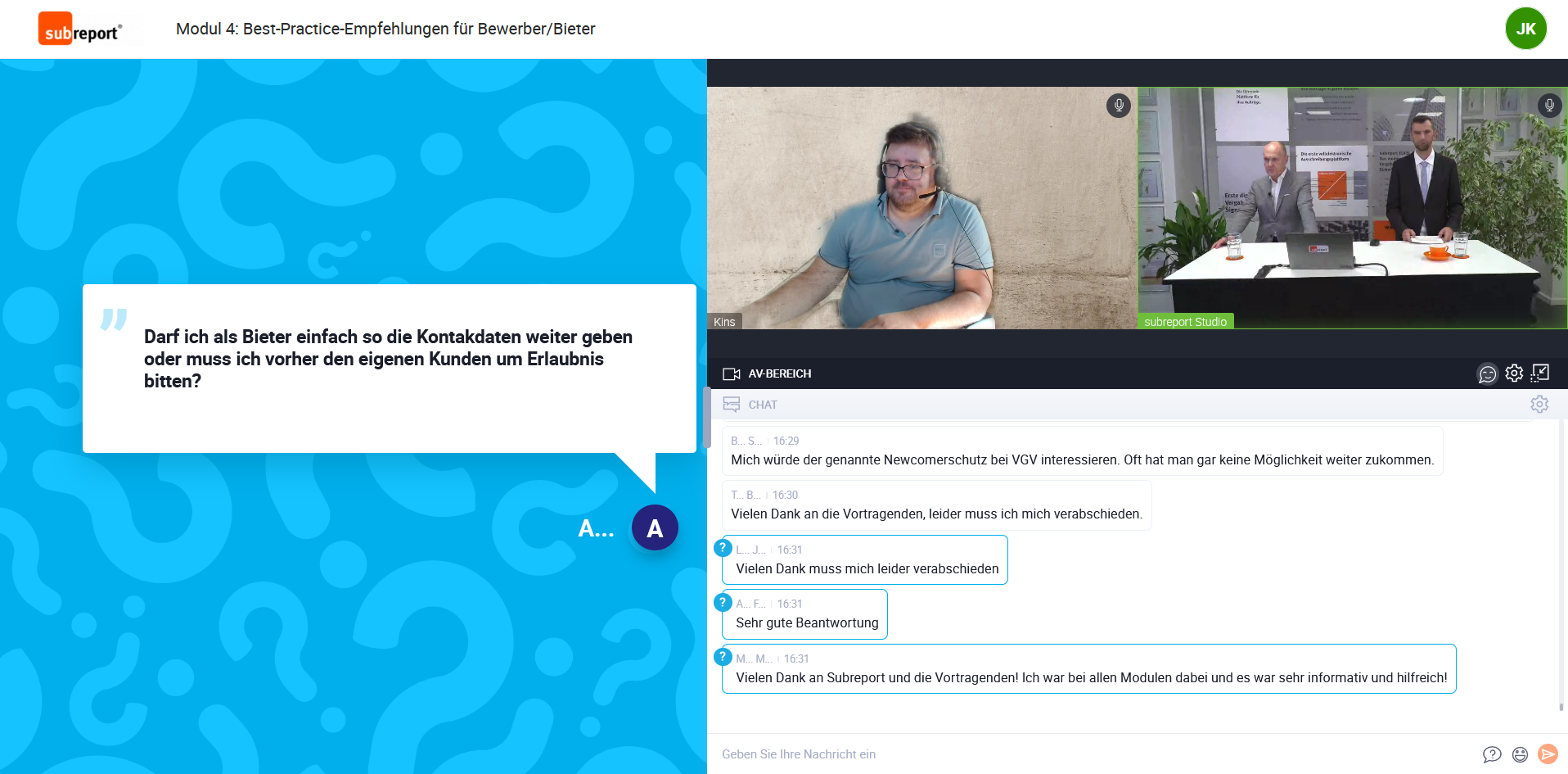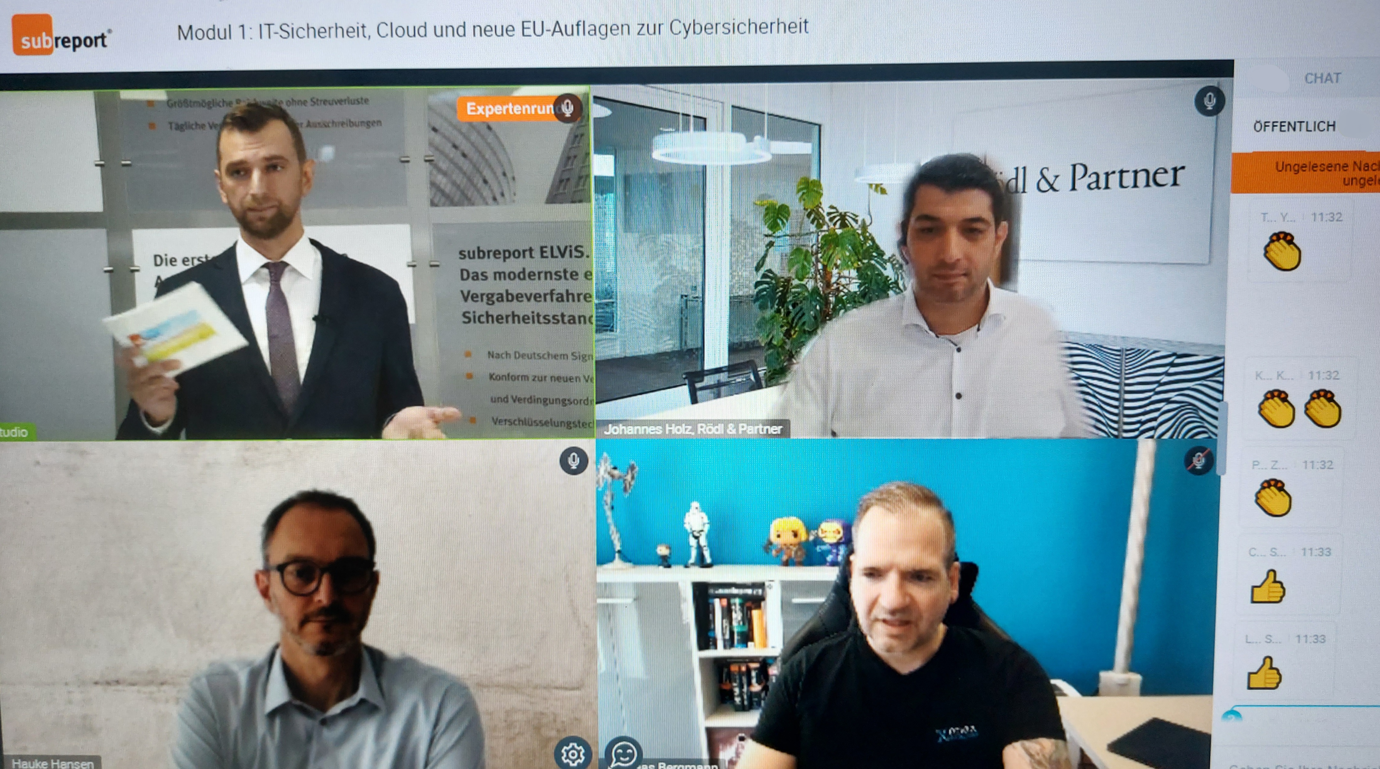 In Modul II am Dienstagnachmittag stand zuerst das große Thema „eForms“ im Fokus. Martin Conrads (Rechtsanwalt und Fachanwalt für Vergaberecht, Bird & Bird LLP), brachte den Teilnehmenden das Thema näher und klärte über Begriff, Terminologie, die rechtlichen Hintergründe sowie Umsetzung der Reform auf. Ab dem 25.10.2023 ist die Verwendung der eForms zwingend vorgeschrieben. Durch die Einführung der eForms werden die Standardformulare in Papierform durch elektronische Formate, die sogenannten eForms, ersetzt. Das große Fragenaufkommen im Chat bestätigte das Interesse und die Notwendigkeit des Themas. subreport konnte bereits erste Einblicke in die Umsetzung der eForms auf der Plattform subreport ELViS gewähren. Entscheidend ist, dass die Bedienung weiterhin intuitiv bleibt, so dass der Anwender von der Umstellung auf eForms kaum etwas merken wird.
