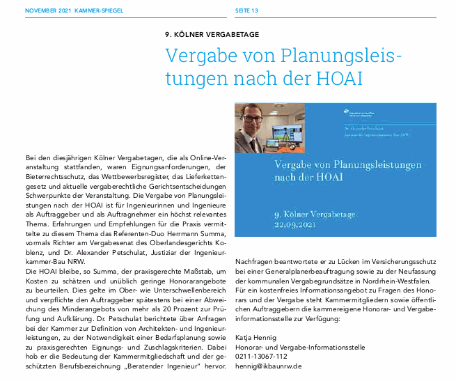 Rückblick auf die 11. Kölner VergabetagePräsentationen: